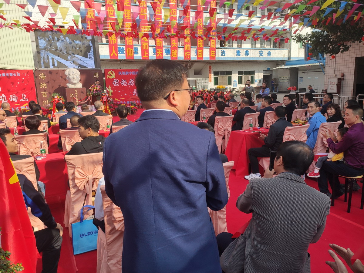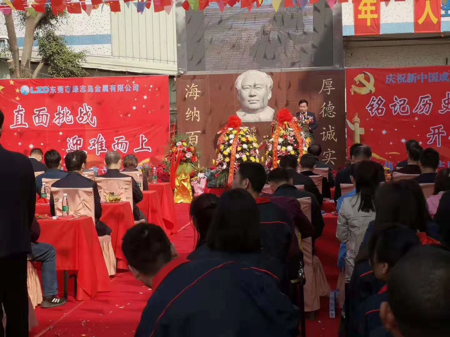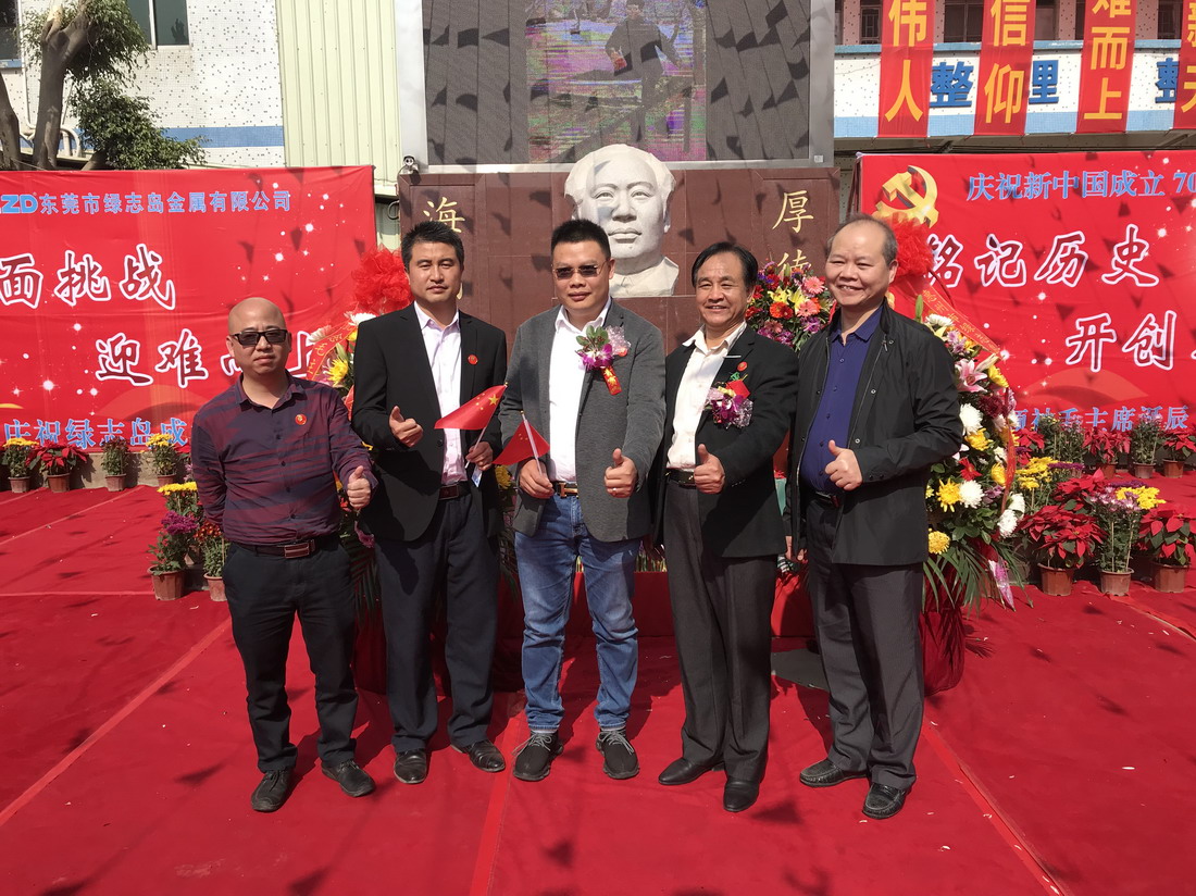 綠志島董事長朱祖生先生帶領我們喊——中國共產黨萬歲!人民萬歲!
